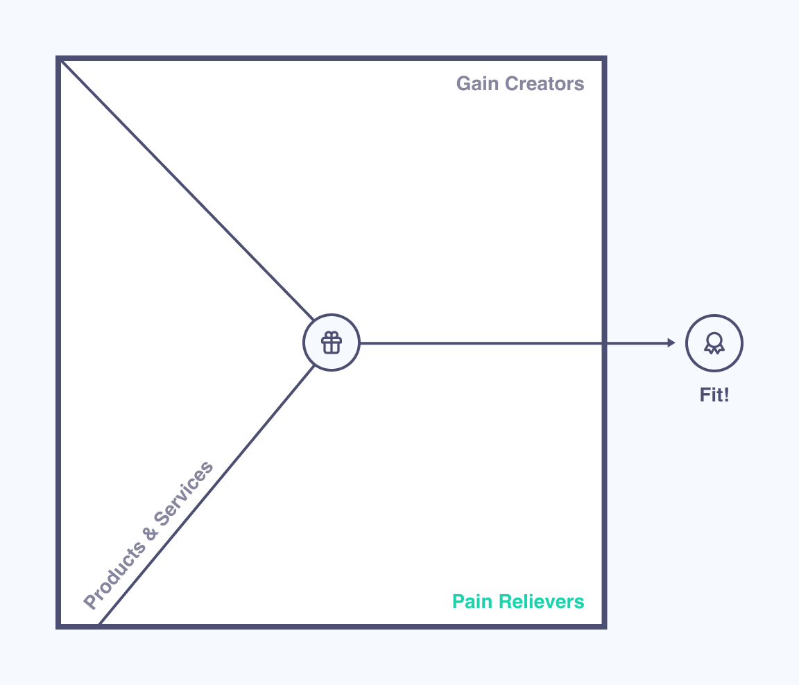 La tua soluzione è utile solo se aiuta i clienti a superare un punto critico significativo. Questa sezione del VPC illustra i modi in cui i tuoi prodotti e servizi alleviano i pain, eliminano i fastidi o rimuovono i rischi relativi al raggiungimento degli obiettivi dei tuoi clienti.